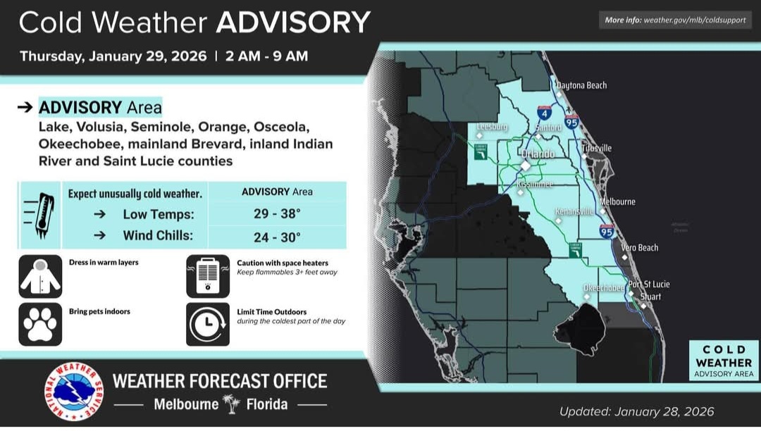 UPDATE 1/28/26 FROM MELBOURNE NATIONAL WEATHER SERVICE
